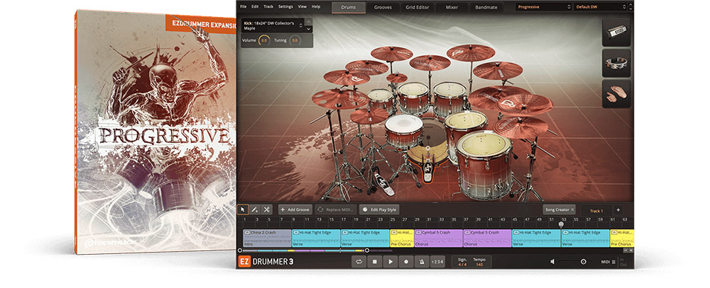 Together with the included presets, the Progressive EZX gives you an unparalleled palette of meticulously recorded, richly textured drum sounds tailored for metal or heavy rock. Start writing!